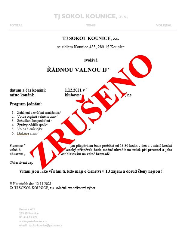 19700101-Valná hromada TJ Sokol Kounice, z.s. se koná 1.12.2021
